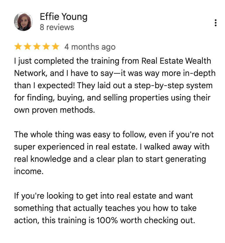 I’m the CMO and Partner at the Real Estate Wealth Network, a company that’s funded over $100 million in deals for investors across the country and helped them collect millions in verified profits using our money, systems and data.
